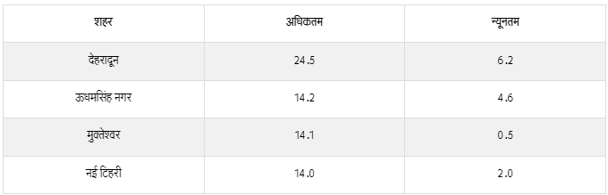वहीं, राज्य के पर्वतीय क्षेत्रों में कहीं-कहीं पाला पड़ने की संभावना जताई गई है, जिससे फसलों को नुकसान पहुंच सकता है। इसके अलावा ऊधम सिंह नगर जनपद में कहीं-कहीं शीत दिवस की स्थिति बनी रह सकती है। जिसे लेकर यलो अलर्ट जारी किया गया है।