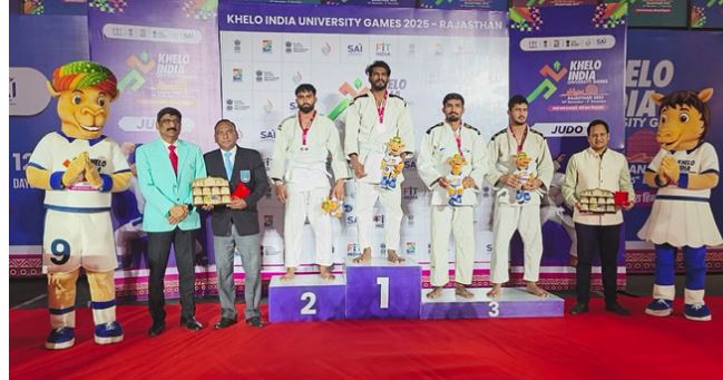 लेक सिटी उदयपुर में चल रहे खेलो इंडिया यूनिवर्सिटी गेम्स के दूसरे दिन बुधवार को जूडो मुकाबलों में खिलाड़ियों ने शानदार प्रदर्शन किया। एमबी स्पोर्ट्स कॉम्प्लेक्स में स्थित अटल बिहारी वाजपेयी इंडोर स्टेडियम में आयोजित प्रतियोगिताओं में विभिन्न विश्वविद्यालयों के पुरुष और महिला खिलाड़ियों ने अपने-अपने भार वर्गों में दमदार खेल दिखाया।