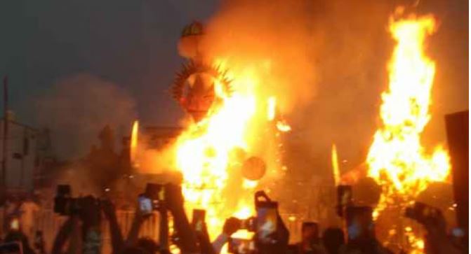 पूर्वी दिल्ली स्थित सीबीडी ग्राउंड में भव्य रामलीला सोसाइटी की ओर से बृहस्पतिवार को रावण दहन नहीं किया गया। लोगों की सुरक्षा को देखते हुए आयोजकों ने शुक्रवार की शाम रावण दहन करने का निर्णय लिया है। आयोजकों ने इस बार दहन के लिए 80 फुट का रावण, 75 फुट का कुंभकरण और 70 फुट का मेघनाद का पुतला तैयार किया है। शास्त्री पार्क स्थित विष्णु अवतार रामलीला, सीबीडी ग्राउंड स्थित बालाजी रामलीलाल, प्रीत विहार स्थित बाल मंदिर सीनियर सेकेंडरी स्कूल में पुतले गीले होने की वजह से देरी से दहन किया गया। रावण दहन करने में मुश्किलों का सामना करना पड़ा।