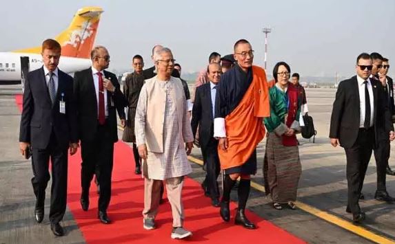 भूटान के प्रधानमंत्री शेरिंग तोबगे शनिवार को दो दिवसीय दौरे पर बांग्लादेश की राजधानी ढाका पहुंचे। ढाका एयरपोर्ट पर बांग्लादेश की अंतरिम सरकार के मुख्य सलाहकार मोहम्मद यूनुस ने भूटान के प्रधानमंत्री का रेड कार्पेट बिछाकर स्वागत किया। दोनों नेताओं के बीच एयरपोर्ट के वीआईपी लाउंज में बैठक भी हुई।