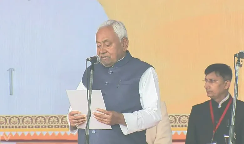 बिहार विधानसभा चुनाव में 202 सीटें लाने वाले राष्ट्रीय जनतांत्रिक गठबंधन के लिए आज ऐतिहासिक दिन है। गांधी मैदान में नीतीश कुमार ने 10वीं बार मुख्यमंत्री पद की शपथ ली। सम्राट चौधरी और विजय सिन्हा फिर से डिप्टी सीएम बनाए गए। मंच पर प्रधानमंत्री नरेंद्र मोदी, केंद्रीय गृह मंत्री अमित शाह और कई केंद्रीय मंत्रियों समेत एनडीए के सभी घटकों के प्रमुखों, एनडीए शासित राज्यों के मुख्यमंत्री और बड़े नेता मौजूद रहे।