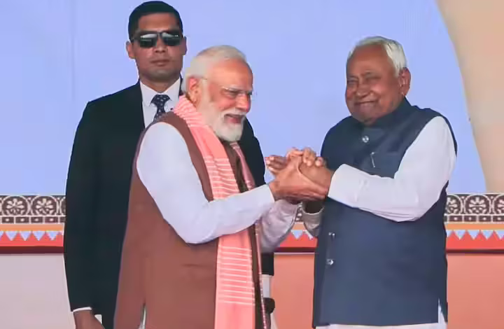 नई सरकार के शपथ ग्रहण के दौरान प्रधानमंत्री मोदी ने बिहार के सीएम का हाथ थामा और दोनों ने एक दूसरे के प्रति अपनापन और सहयोग का इजहार किया. यह पल कैमरे में कैद हो गया.