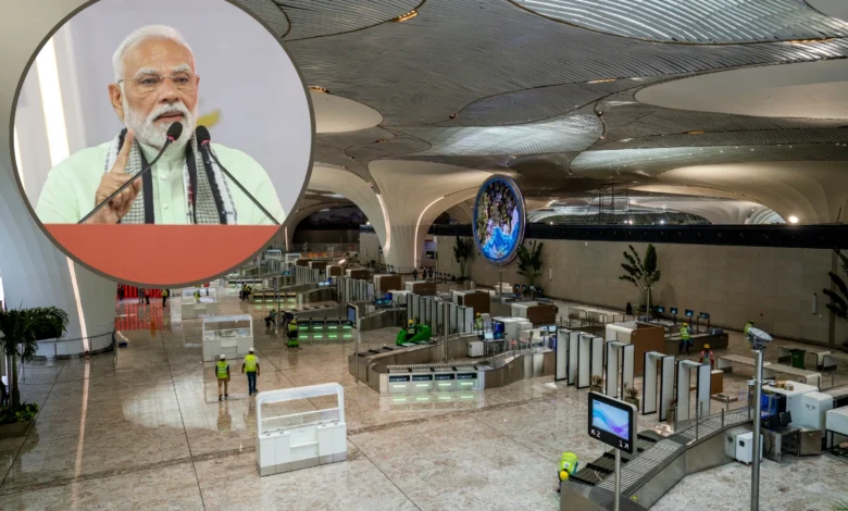 PM मोदी ने नवी मुंबई इंटरनेशनल एयरपोर्ट का किया उद्घाटन, जानें कब और कहां के लिए शुरू होंगी फ्लाइट? प्रधानमंत्री नरेंद्र मोदी ने बुधवार (8 अक्तूबर 2025) को नवी मुंबई अंतरराष्ट्रीय एयरपोर्ट (NMIA) के पहले फेज का उद्घाटन किया. इस एयरपोर्ट के पहले चरण का निर्माण 19,650 करोड़ रुपये की लागत से किया गया है. यह भारत की सबसे बड़ी ‘ग्रीनफील्ड’ हवाई अड्डा परियोजना है जिसे सार्वजनिक-निजी भागीदारी (पीपीपी) के अंतर्गत विकसित किया गया है.